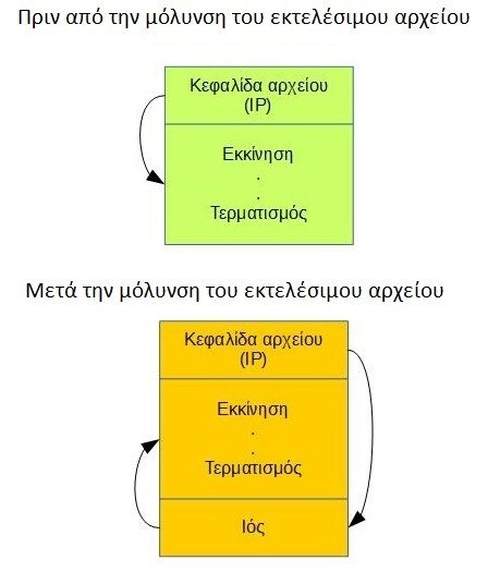 Σχήμα 3.1 Πριν και μετά τη μόλυνση του εκτελέσιμου αρχείου