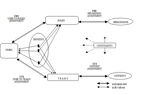 Οι ομάδες θεωρούνται ως σύνολα πληροφοριών contexts σχετικών με τις τρέχουσες δραστηριότητες. Επιλέγοντας λοιπόν ο χρήστης μια ομάδα, αποκτά επιπλέον (σε δεύτερη φάση) και το σύνολο των contexts που αντιστοιχεί σ΄ αυτήν. Το πλαίσιο αναφοράς της ομάδας (team context) αποτελείται από συγκεκριμένα αντικείμενα δεδομένων (στόχοι αιτήσεων πρόσβασης) και από συνθήκες που εκφράζονται με όρους πεδίων τιμών (ranges of values) για τους παράγοντες context. Για κάθε ομάδα υπάρχουν διαθέσιμες μεταβλητές συστήματος, ικανές να διατηρούν σύνολα τιμών για τις παραμέτρους που επιλέξαμε. Το ‘δέσιμο’ αυτών των μεταβλητών με τις πραγματικές τιμές τους, πραγματοποιείται σε πραγματικό χρόνο (runtime) από το προσωπικό διαχείρισης του οργανισμού, ενώ και αρκετές από τις προβλεπόμενες διαδικασίες εκχώρησης-ανάθεσης μπορούν έως ένα βαθμό να αυτοματοποιηθούν με τη χρήση κατάλληλων διατάξεων ελέγχου φυσικής παρουσίας των χρηστών, ενός ελέγχου που πραγματοποιείται σε συνδυασμό με τη δυνατότητα καθορισμού διάρθρωσης των ομάδων με όρους ρόλων για συχνά εμφανιζόμενες καταστάσεις.
